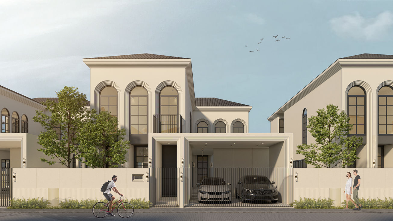 The ARCH, housing estate project blends modern and classic elements under 'When Modern Meets Classic' concept by 'PREDEE Architects'. It repurposes the curve (ARCH) into modern design. The front entrance and garage use repetition and recess of the main curve with an arch for a welcoming feel.